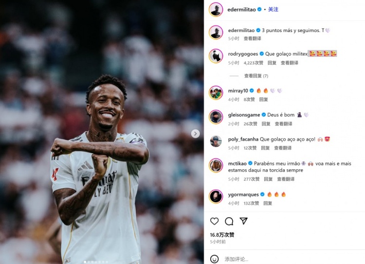 姆巴佩社媒晒照庆祝胜利,罗德里戈、维尼修斯、恩德里克评论称赞